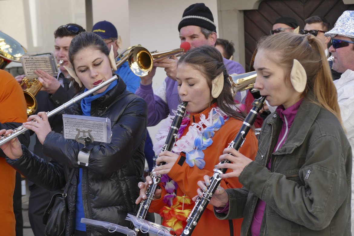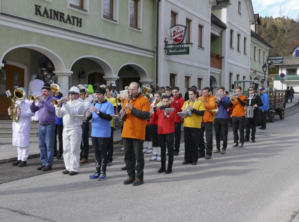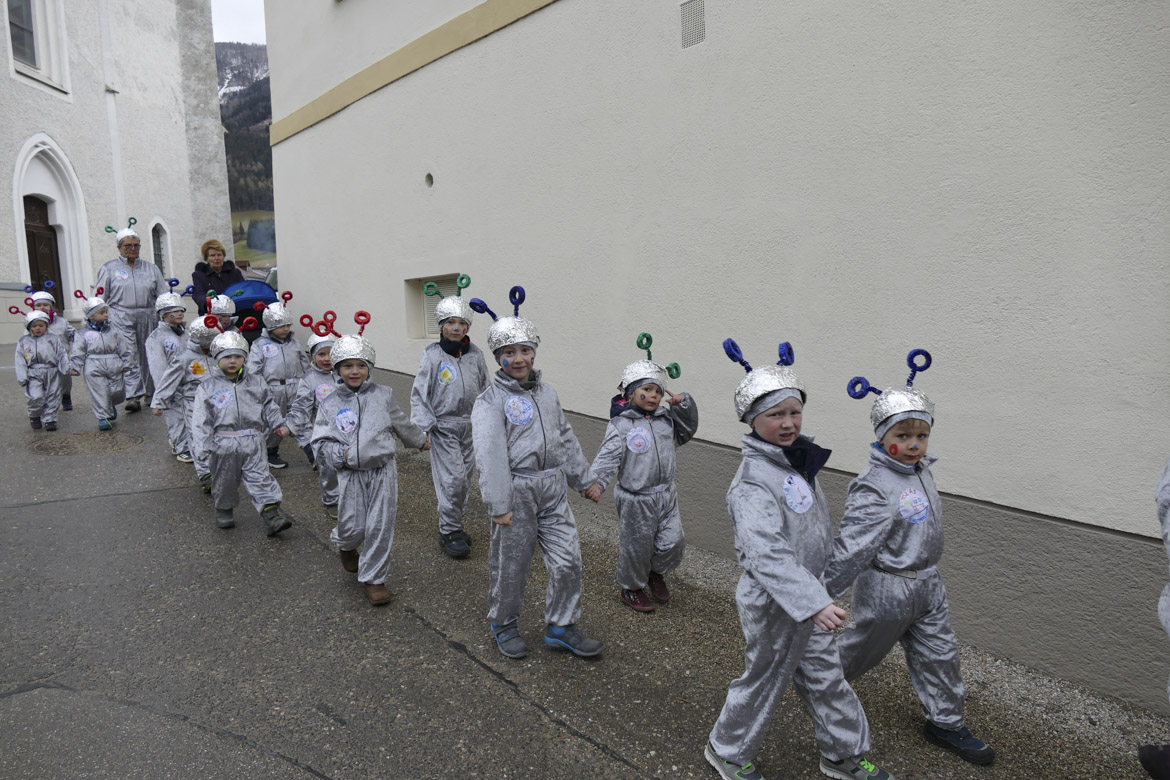 Das Motto am Faschingsdienstag dem 5.März 2019 lautete "Besuch aus dem All". Schon am Vormittag zeigten sich, bei nicht sehr freundlichem Wetter, die Kinder aus dem Kindergarten in ihrer bunten Verkleidung. Das Nachmittagsprogramm begann um 14 Uhr mit dem Einzug der "Ehrengäste" auf einem alten Leiterwagen. Angeführt wurde der bunte Zug von der Musikkapelle. Den Nachmittag gestaltete das Narrenkomitee mit den Gruppen aus den verschiedenen Vereinen.