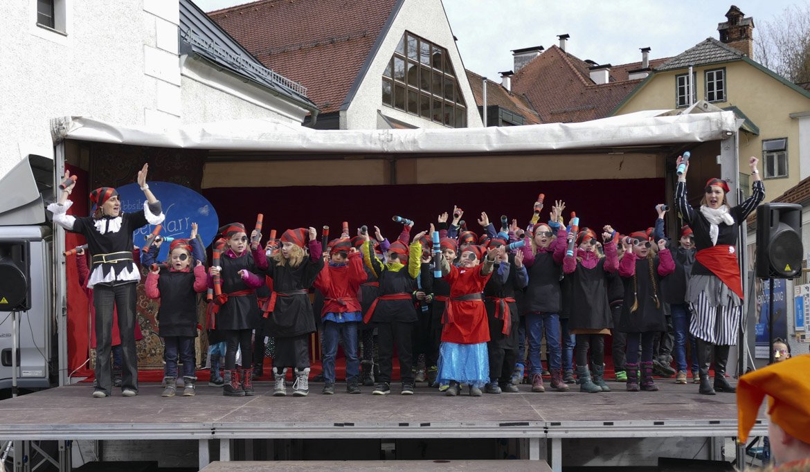 Das Motto des diesjährigen Faschingdienstag lautete "Ybbsitz sucht den Supernarr". Schon am Vormittag zeigten sich die Kindergartenkinder in ihren bunten Kostümen auf der Bühne und begeisterten mit Tanz und Gesang das Publikum. Auch die Neue Mittelschule beteiligte sich am bunten Treiben. Das Hauptprogramm am Nachmittag begann mit dem Einzug der ganz in schwarz gekleideten Musikantinnen und Musikanten, die einen Wagen anführten, der mit den Ehrengästen beladen war. Im anschließenden Programm konnte man die Neugkeiten des vergangen Jahres in lustiger Weise erfahren und die vielen anderen Programmpunkte bewundern.